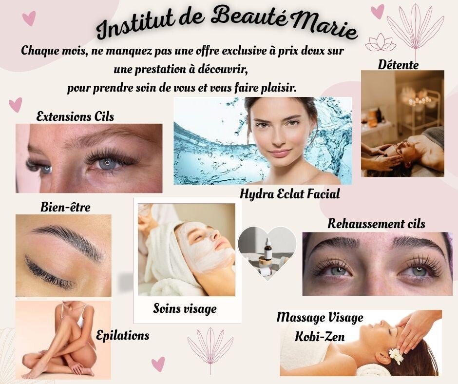 L'Institut de Beauté Marie est un espace dédié à votre bien-être, spécialisé dans les soins visage et corps personnalisés.